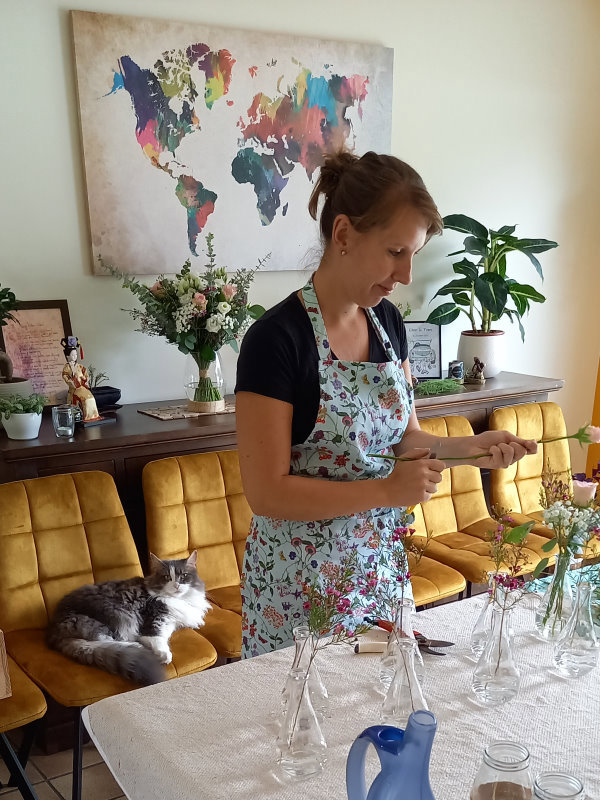 Zo besloot ik om in 2020 aan een nieuw avontuur te beginnen en startte met de opleiding Florist bij Syntra in Antwerpen Berchem. Er ging een hele nieuwe wereld voor me open! In april 2022 heb ik uiteindelijk de sprong gewaagd om in bijberoep te gaan, en zo mijn passie verder te delen met anderen!